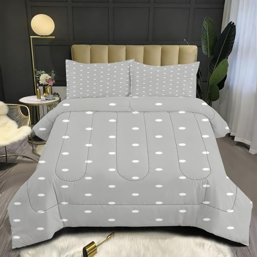 Fotmung Ensemble Lit Complet 160x200 cm Pois Gris, Housse en Microfibre Imprimée et Duvet Coton 4 Saisons, Comprend 2 Taies, Excellence et Qualité Supérieure, Chaud et Respirant E242