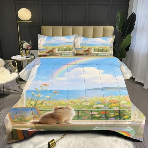 Fotmung Ensemble Lit Complet 160x200 cm Animal Chat, Housse en Microfibre Imprimée et Duvet Coton 4 Saisons, Comprend 2 Taies, Excellence et Qualité Supérieure, Chaud et Respirant E144