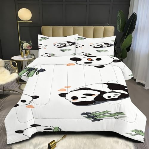 Fotmung Ensemble Lit Complet 160x200 cm Panda, Housse en Microfibre Imprimée et Duvet Coton 4 Saisons, Comprend 2 Taies, Excellence et Qualité Supérieure, Chaud et Respirant E308