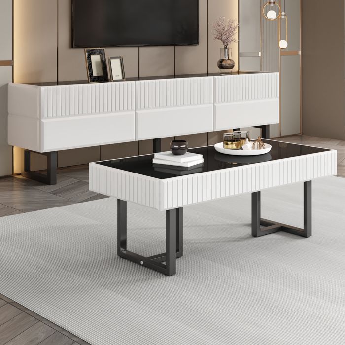 Ensemble meuble tv + table basse 180 cm noir laqué brillant, design moderne élégant, rangement salon