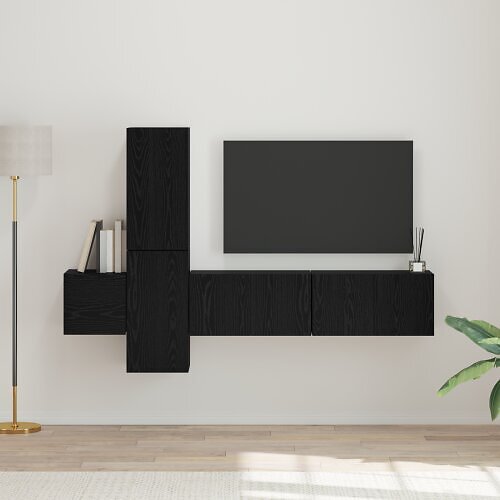 vidaXL Ensemble de meuble TV 4 pièces Chêne Noir Bois d'ingénierie