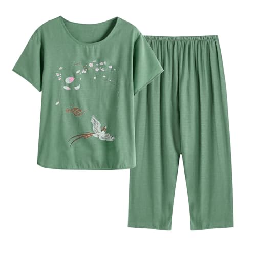 Ensemble Pantalon Femme Chic Et Elegant- Ensemble Pyjama D'éTé LéGer à Porter à L'ExtéRieur Composé d'un Haut à Col Rond Manches Courtes Et Pantalon Court