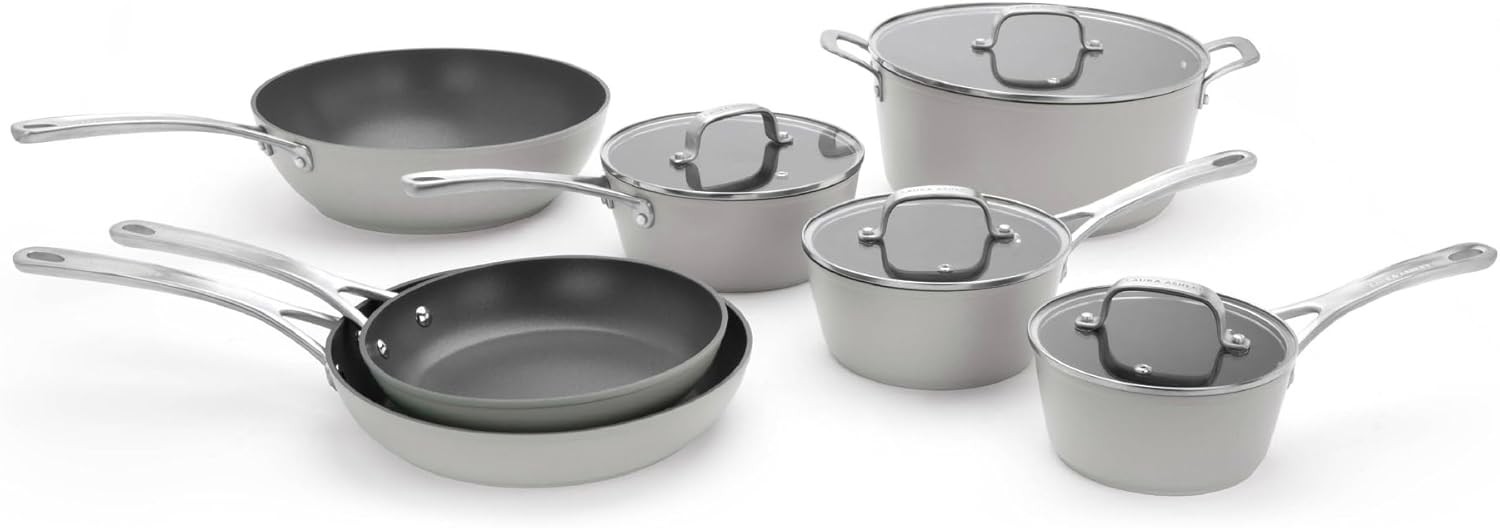 Just PERFECTO Batterie de cuisine induction set de casseroles tout feux avec couvercle en verre anti adhesive poele sans PFOA et sans PTFE