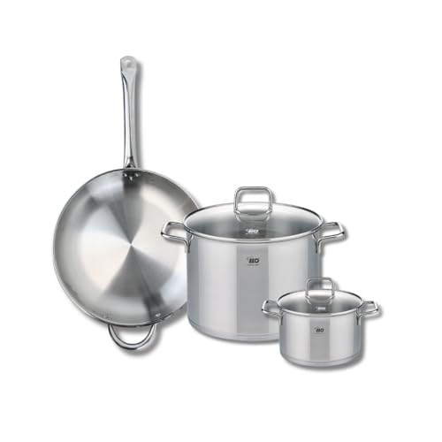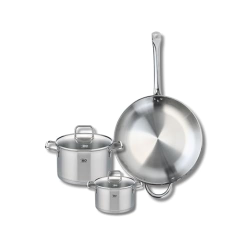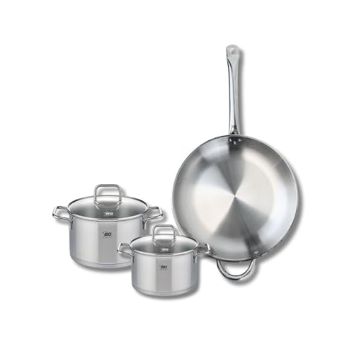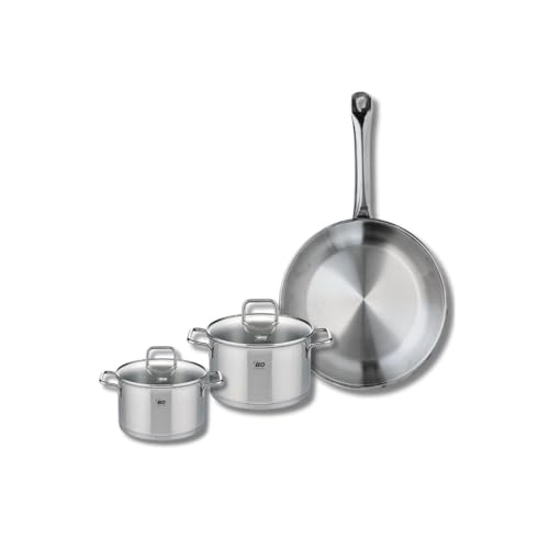 ELO 9699150 Batterie de cuisine 3 pièces, Ensemble de 1 Poêle de cuisson 32 cm et 2 faitouts 12 et 20 cm Elo Profi Citrin, inox, induction