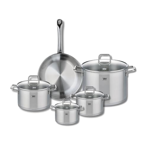 ELO 9698250 Batterie de cuisine 5 pièces, Ensemble de 1 Poêle de cuisson 28 cm et 4 faitouts 14, 16, 20 et 26 cm Elo Profi Citrin, inox, induction