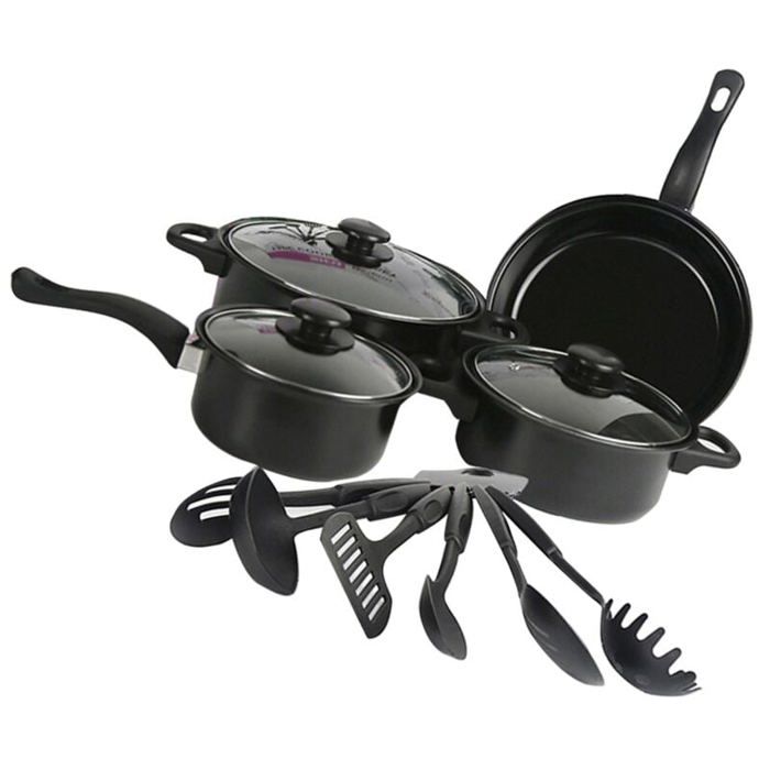 Ensemble de Casseroles et Poêles Antiadhésif 13 Pièces - - Compatible Induction - Casserole Marmite Poêle à Frire - Noir