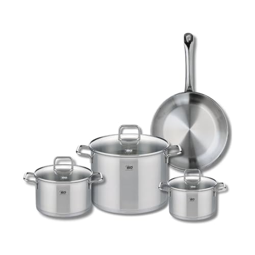 ELO 9697350 Batterie de cuisine 4 pièces, Ensemble de 1 Poêle de cuisson 28 cm et 3 faitouts 12, 20 et 26 cm Elo Profi Citrin, inox, induction