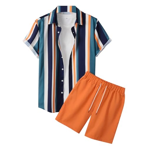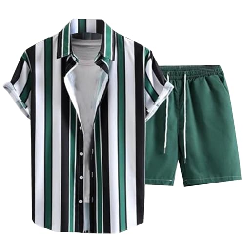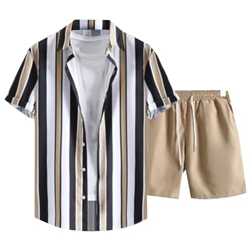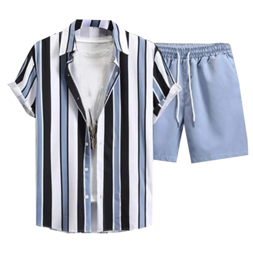 Ensemble Chemise Short Homme Grande Taille Eté Tee Shirt Manches Courtes Imprimé à Rayures avec Boutons Short Baggy Taille élastiquée avec Cordon Casual LéGer Respirant de Plage Vacances Tenues