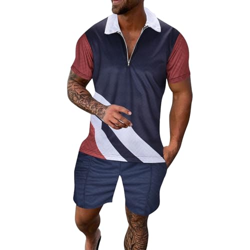 Chnnamzu Ensemble Short Et Polo Homme 2 Pièces, Ensemble Homme Ete Polo avec Demi-Zip Manches Courtes + Short avec Poches Casual Tenue de Sport SurvêTement De Jogging Sportswear pour Plage Vacances