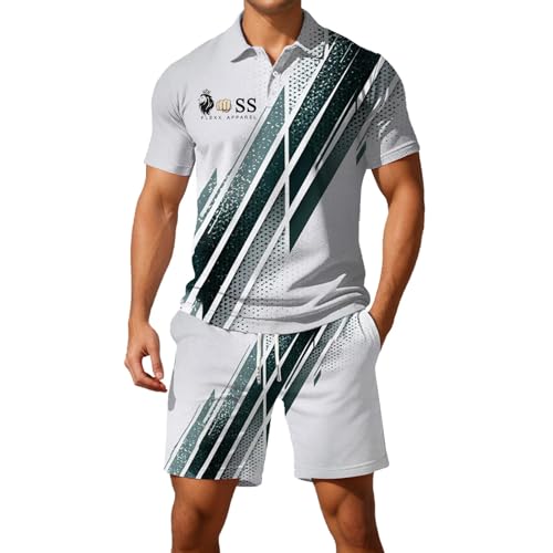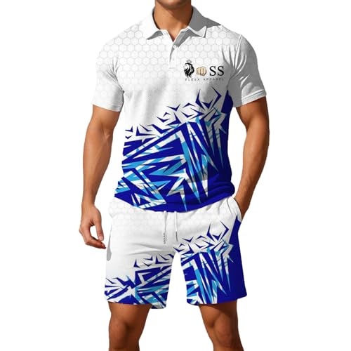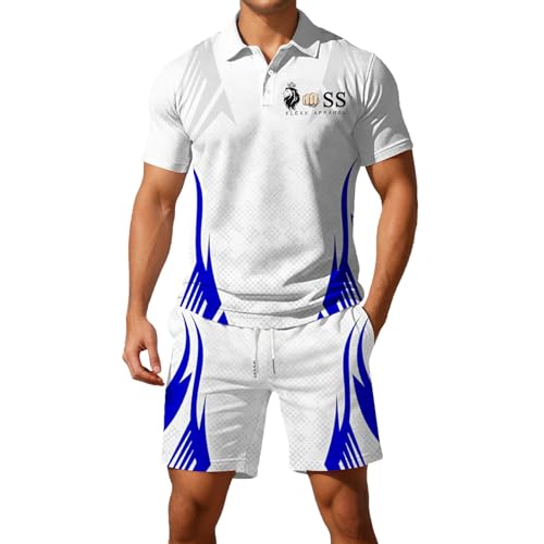 Survetement Homme Ete Ensemble Short Tee Shirt Homme à Manches Courtes Sportswear Tenue de Sport Grande Taille Polo Golf Respirant T Shirt Tennis Boutons de Col Ensemble de Survêtement Jogging