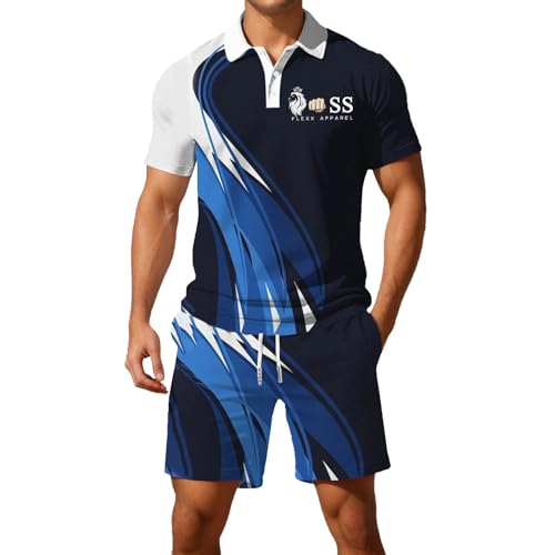 Générique Ensemble Short Homme Jogging Sport Survetement, Tee Shirt Hommes Sport Short Bermuda Tracksuit Sets Style Hawaïen Vêtements Sportifs Manche Courte Respirant Survetement pour Salle De Sport