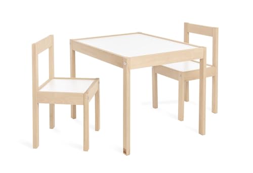 roba Ensemble Table et 2 Chaises Enfants - Pieds en Bois Massif - Pour Filles et Garçons de 2 Ans et plus - Supporte 50 kg - Style Scandinave - Naturel / Blanc