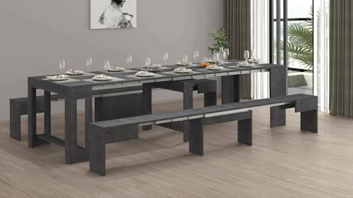 Dmora - Ensemble Table et chaises Eric, Composition Polyvalente, Ensemble avec Console et 2 bancs Extensibles, 100% Made in Italy, 66x25h45 cm, Ardoise
