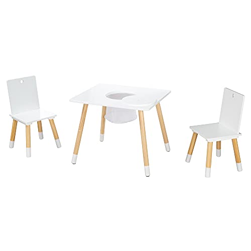 roba Ensemble Table et 2 Chaises Enfants avec Filet de Rangement - Pieds en Bois Massif - pour Filles et Garçons de 2 Ans et plus - Supporte 50 kg - Blanc / Naturel
