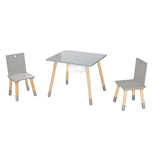 roba Ensemble Table et 2 Chaises Enfants avec Filet de Rangement - Pieds en Bois Massif - pour Filles et Garçons de 2 Ans et plus - Supporte 50 kg - Gris / Naturel