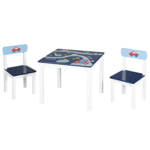 roba Ensemble Table + 2 Chaises Enfants Rennfahrer - Motif Véhicules - Ensemble de Meubles - Blanc / Bleu, Petit