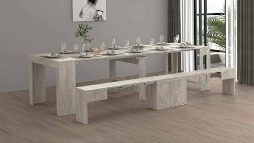 Dmora - Ensemble Table et chaises Crispin, Composition Polyvalente, Ensemble avec Console et 1 Banc Extensible, 100% Made in Italy, 66x25h45 cm, Ciment