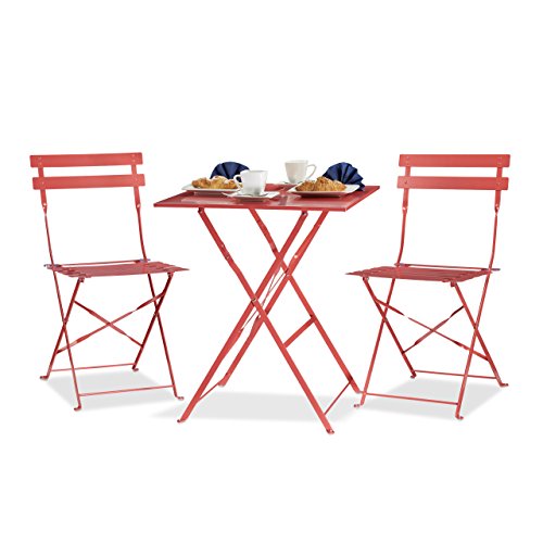 Relaxdays Ensemble table et chaises de bistrot pliants en 60 x 60 cm carré métal jardin extérieur, rouge