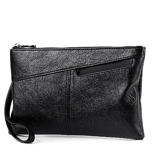 Pochette pour Homme Pochette for Homme en Cuir Vintage, Sac enveloppe à Clip, Grande capacité(Brown)