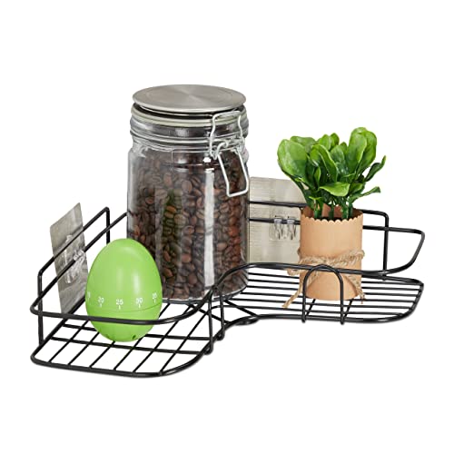 Relaxdays Etagère d’Angle, à Coller, Rangement, épices, Herbes, Murale, HxLxP : 5,5x26x26 cm, Fer, Noir