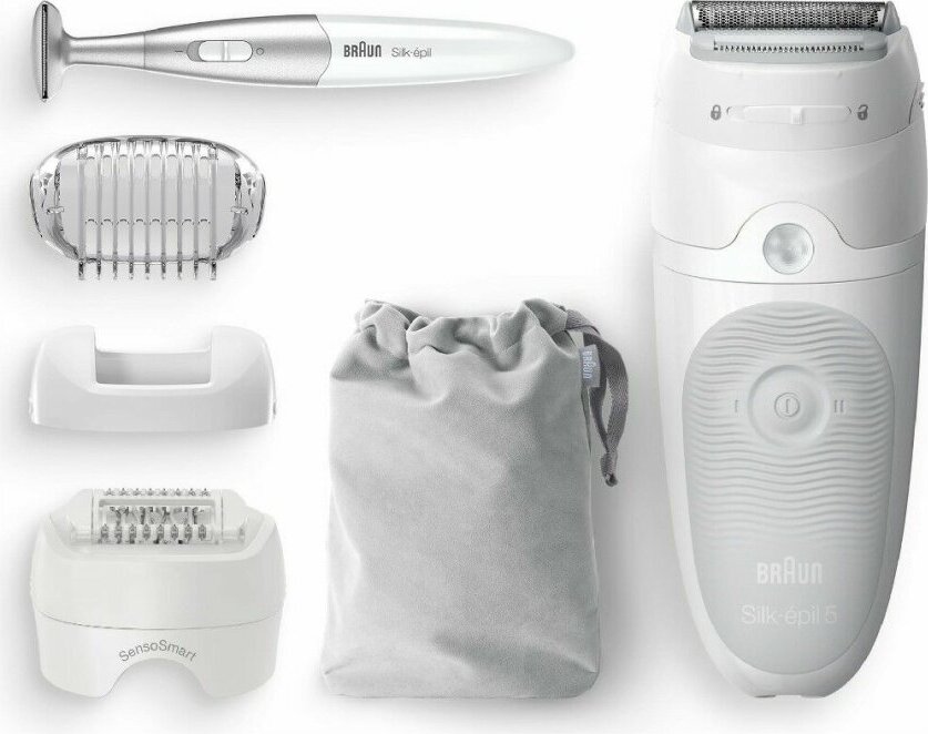 Braun Silk-épil 5 Beauty Set Épilateur pour femmes pour l'épilation avec accessoires rasoir, tondeuse et massage corporel Comprend la tondeuse à bikini, sac - Blanc/Gris SES 5-825 W&D