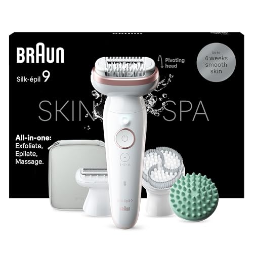 Braun Epilateur Electrique Pour Femmes Silk-épil 9 9-080, Tête Flexible 360° Pour Epilation Facile, Etanche, Sans Fil, Avec Tête De Rasoir, Brosse Exfoliante Et Sabot Tondeuse, Kit De Spa Tout-En-Un