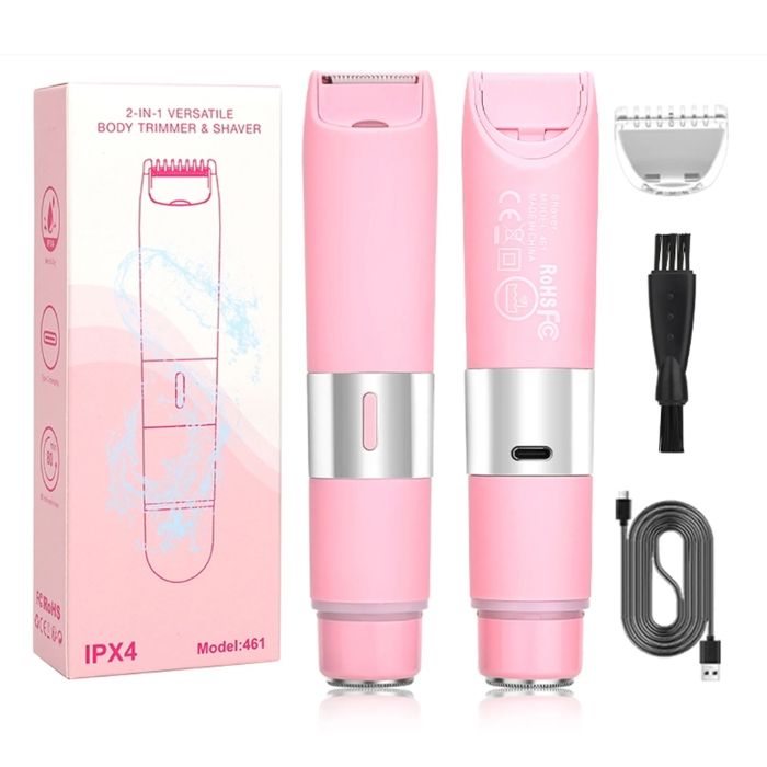 Rasoir électrique 4 en 1 pour le visage et le corps - Épilateur rechargeable - Tondeuse pour femme - Rose