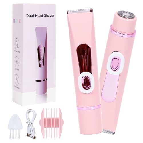 Wishstar 2 in 1 Rasoir Electrique Femme, Tondeuse Intime, Étanche Rasoirs électriques Femme, Epilateur Visage, Utilisation Humide et sèche Pour Maillot, Visage, Aisselles, Jambes, Bras, Corps (Rose)