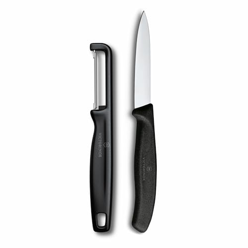 Victorinox Swiss Classic Set de couteaux à légumes avec éplucheur, pour légumes et fruits, 2 pièces, Lame extra tranchante, Noir