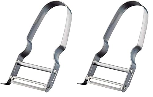 kjøk Ensemble d’éplucheurs fin & large avec lame tranchante en acier inoxydable, manche en alliage de zinc - Éplucheur à légumes, pommes de terre et fruits, ergonomique, robuste, antidérapant, durable