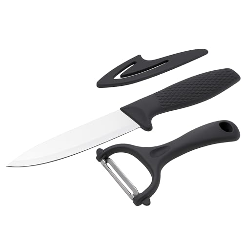 ARENCE – Set Couteau de Cuisine 22 cm + Éplucheur 14 cm en Acier Inoxydable – Outils de Préparation Alimentaire – Couteau Polyvalent + Éplucheur Légumes Ergonomique – Accessoires Cuisine Durables