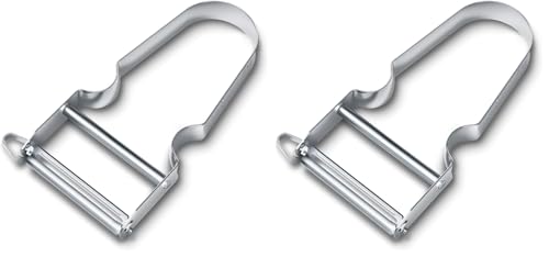Victorinox Éplucheur STAR, Éplucheur de pommes de terre, Double tranchant avec lame pendulaire, Extra tranchant, Manche métal, Swiss Made (Lot de 2)