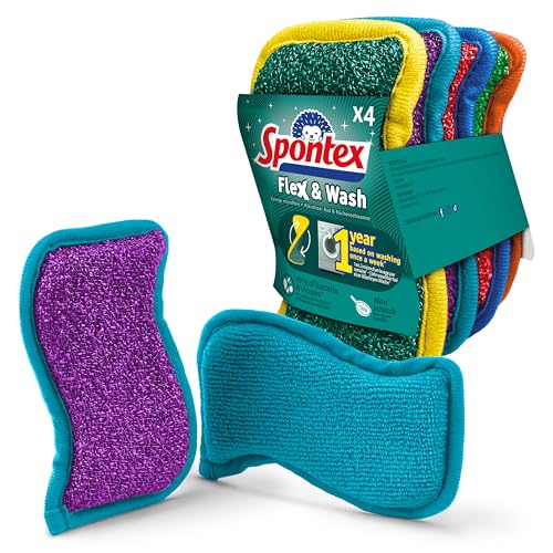 Éponges réutilisables Spontex Flex & Wash | Éponge Microfibre Double Face pour essuyer et frotter | Produits de Nettoyage pour la Cuisine, la Salle de Bain et la Maison | 4 Paquets de 2 (4 au Total)