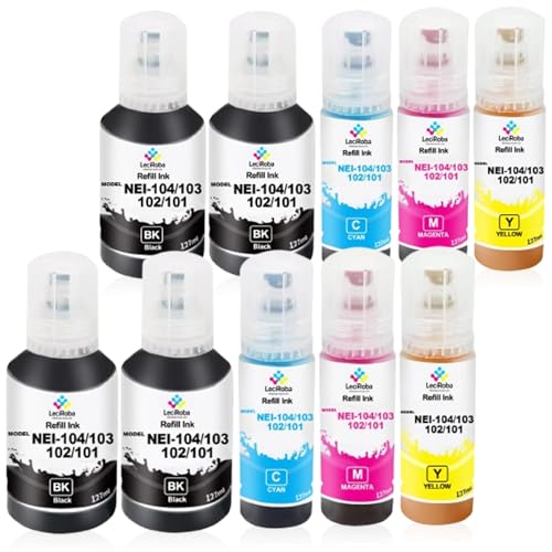 LeciRoba ET-104 pour Cartouche epson 104 103 102 et Encre epson 104,pour ET-2710 2711 2712 2714 2715 2720 2721 2726 2810 2815 2820 2821 2825 2826 4700 4800 imprimante (10 Paquets)
