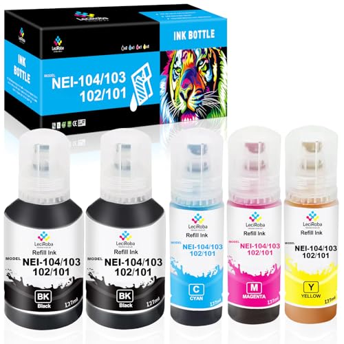 LeciRoba ET-104 pour Cartouche epson 104 103 102 et Encre epson 104,pour ET-2710 2711 2712 2714 2715 2720 2721 2726 2810 2815 2820 2821 2825 2826 4700 4800 imprimante (5 Paquets)
