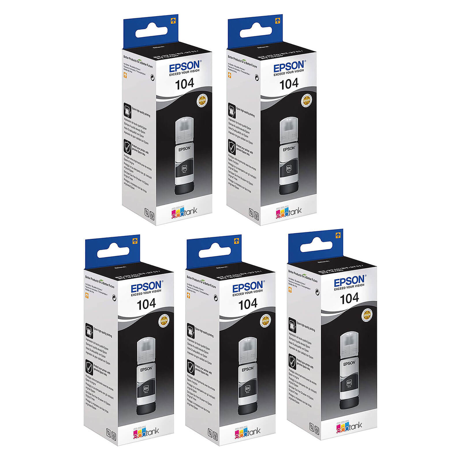 Clywenss Lot de 104 cartouches d'encre compatibles avec Epson 104 102 pour Ecotank ET-2820 ET-4850 ET-2850 ET-2810 ET-3850 ET-4800 ET-2821 ET-2840 ET-4856 ET-2851 ET-2851 T-28144 Lot de 5 (2 noir