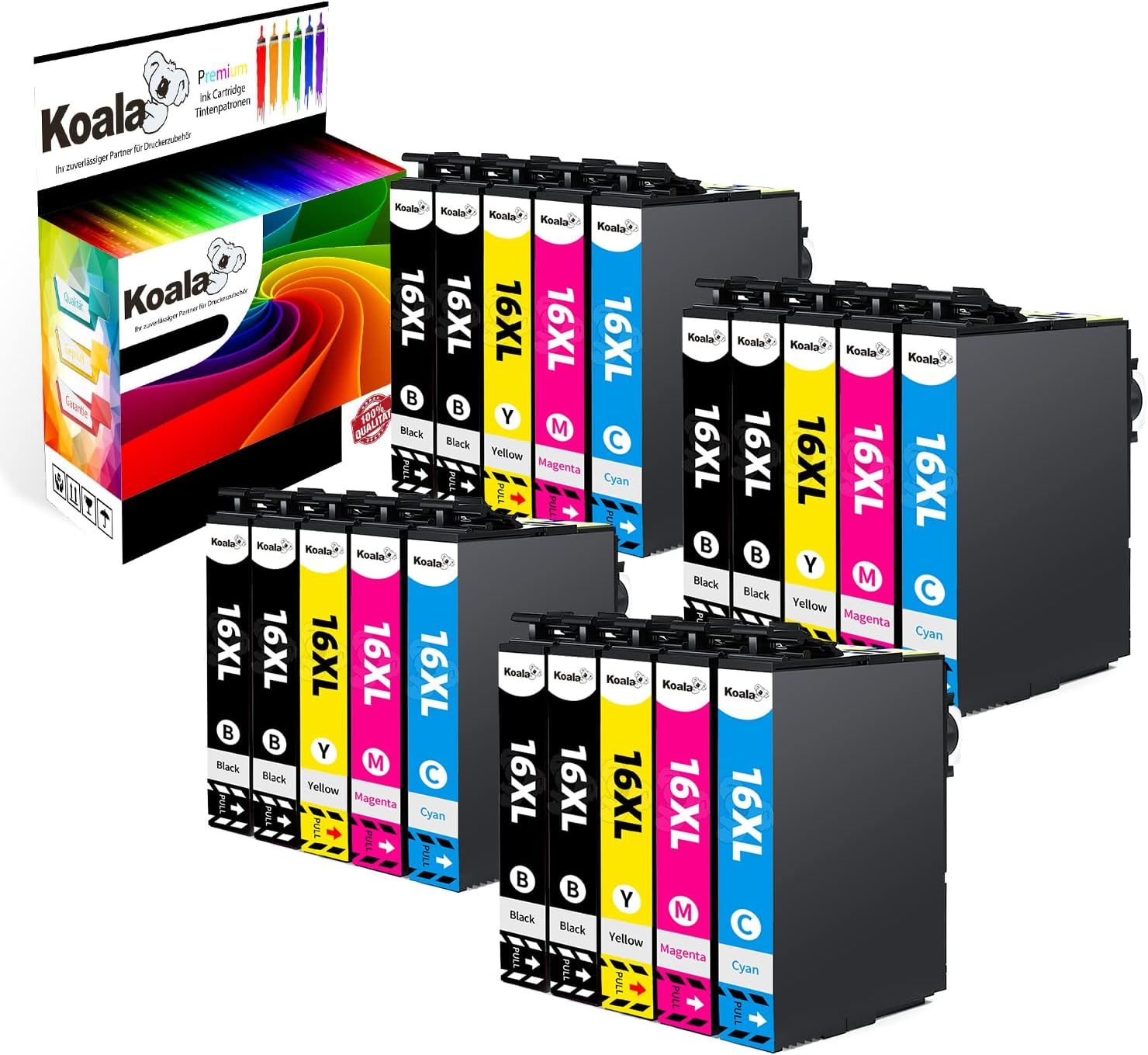 Koala 20-Pack 16XL Cartouche d’Encre Compatible pour Epson 16 XL T1631 T1632 T1633 T1634 Multipack pour Workforce WF-2010 WF-2510 WF-2520 WF-2530 WF-2540 WF-2630 WF-2650 WF-2660 WF-2750