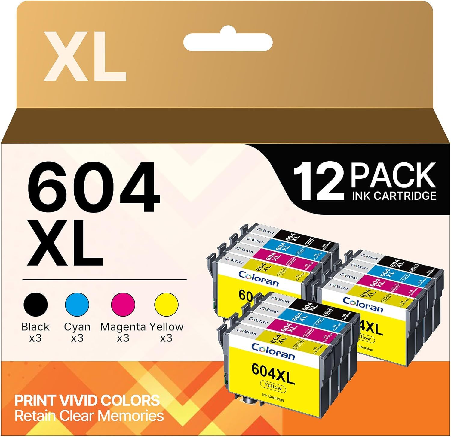 604 Xl Cartouche Compatible Pour Cartouche Encre Epson Xp 2200 Pour Cartouche Encre Epson 604 Xl Pour Expression Home Xp-2200 Xp-2205 Xp-3200 Xp-4200 Workforce Wf-2910Dw/2930Dwf (12 Pack)