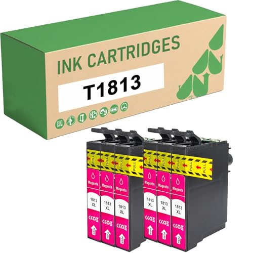 18XL T1813 Cartouches d'encre Magenta Compatibles pour Epson 18 XL T1813 Encre pour Expression Home XP-30 XP-102 XP-202 XP-205 XP-302 XP-305 XP-402 XP-405 Imprimante 6-Pack
