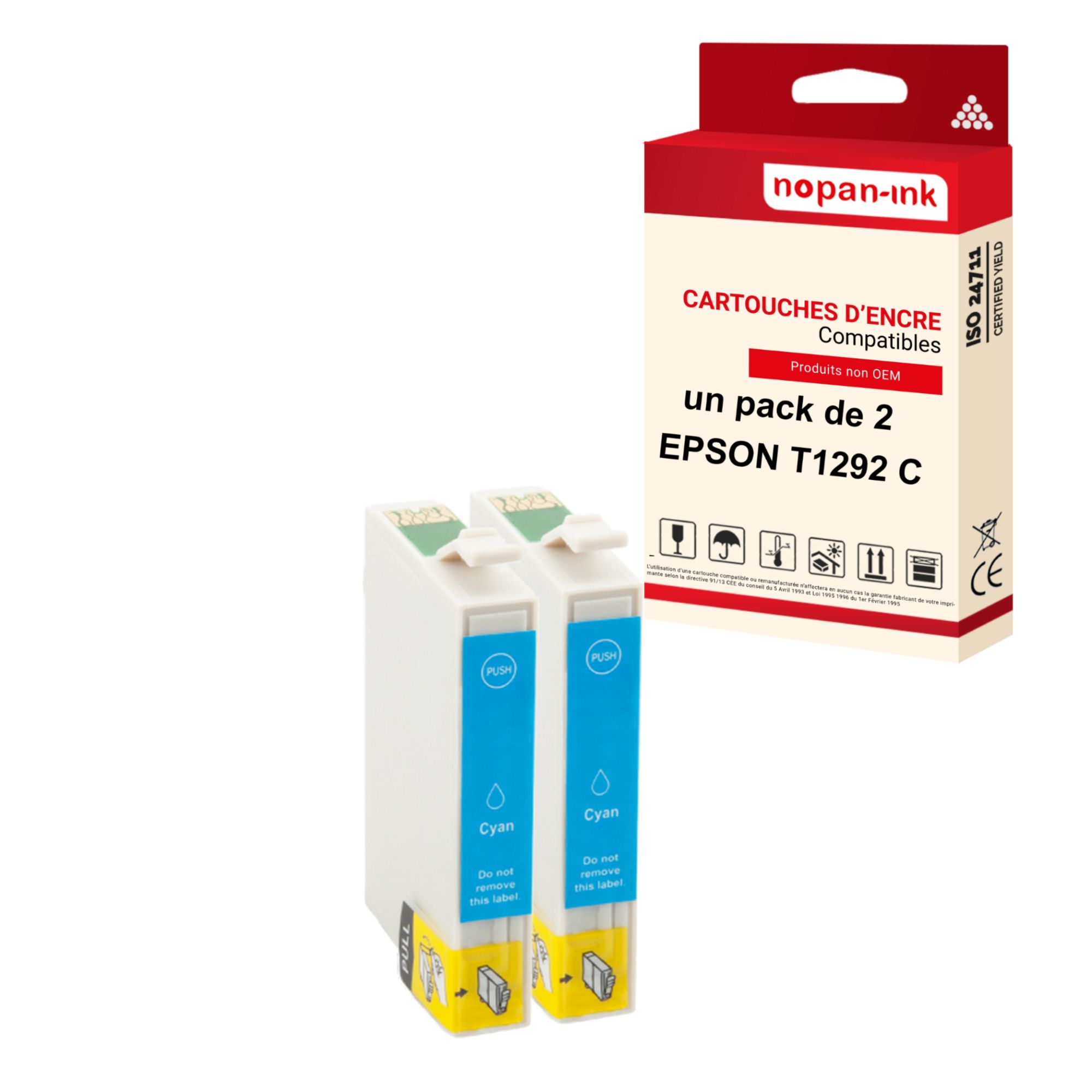 NOPAN-INK - x2 Cartouches compatibles pour EPSON T1292 XL T1292XL Cyan (Pomme) pour Epson Stylus Office BX 305 F BX 305 FW BX 525 WD Stylus SX 230 235