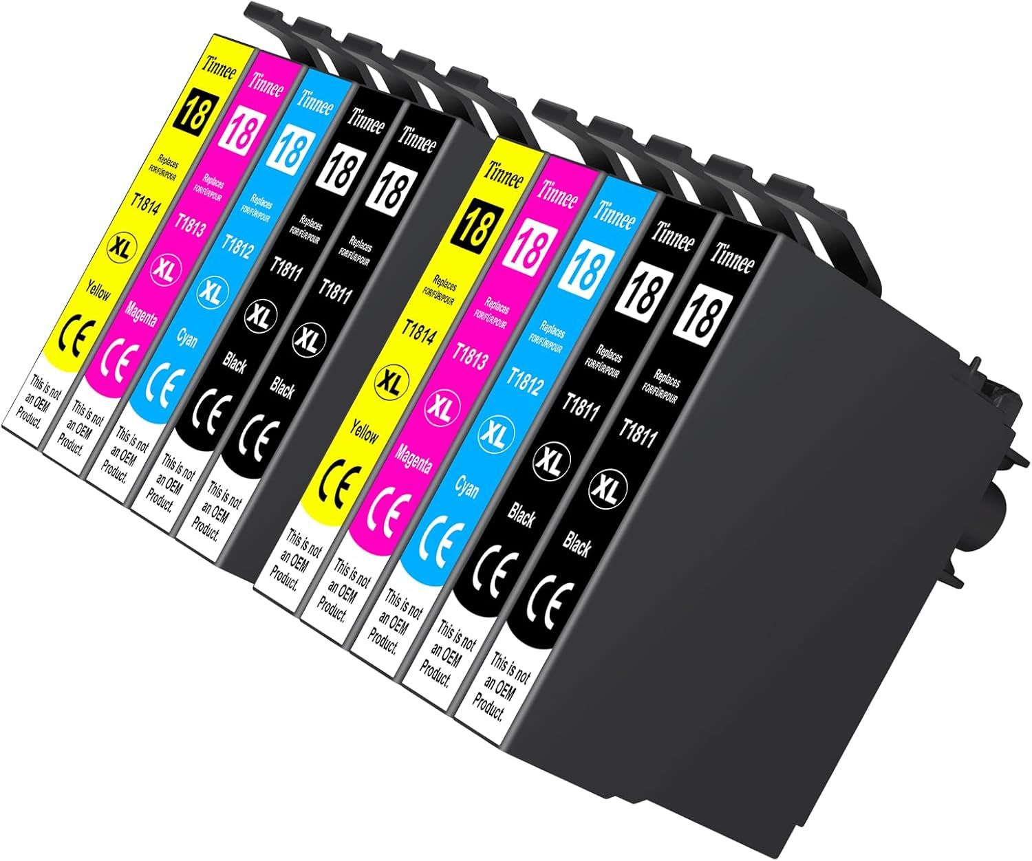 Tinnee 10 Paquet 18XL Cartouches d'encre, Remplacer Les Expression 18XL 18 XL Cartouches, Compatible avec Epson Expression Home XP-205 XP-215 XP-225 XP-305 XP-312 XP-315 XP-322 XP-325