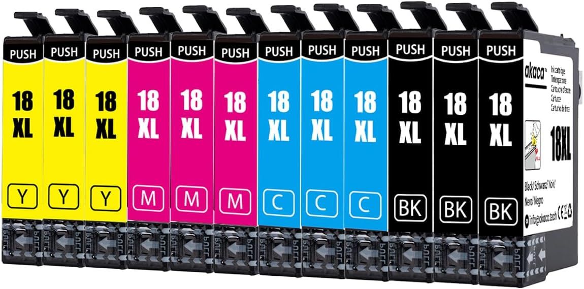 Compatible Cartouches d'encre Remplacement pour Epson 18 18 XL pour Expression Home XP-322 XP-215 XP-205 XP-225 XP-305 XP-325 XP-422 XP-405 XP-415 XP-425 (Pack 12 (3N+3C+3M+3J) XL)