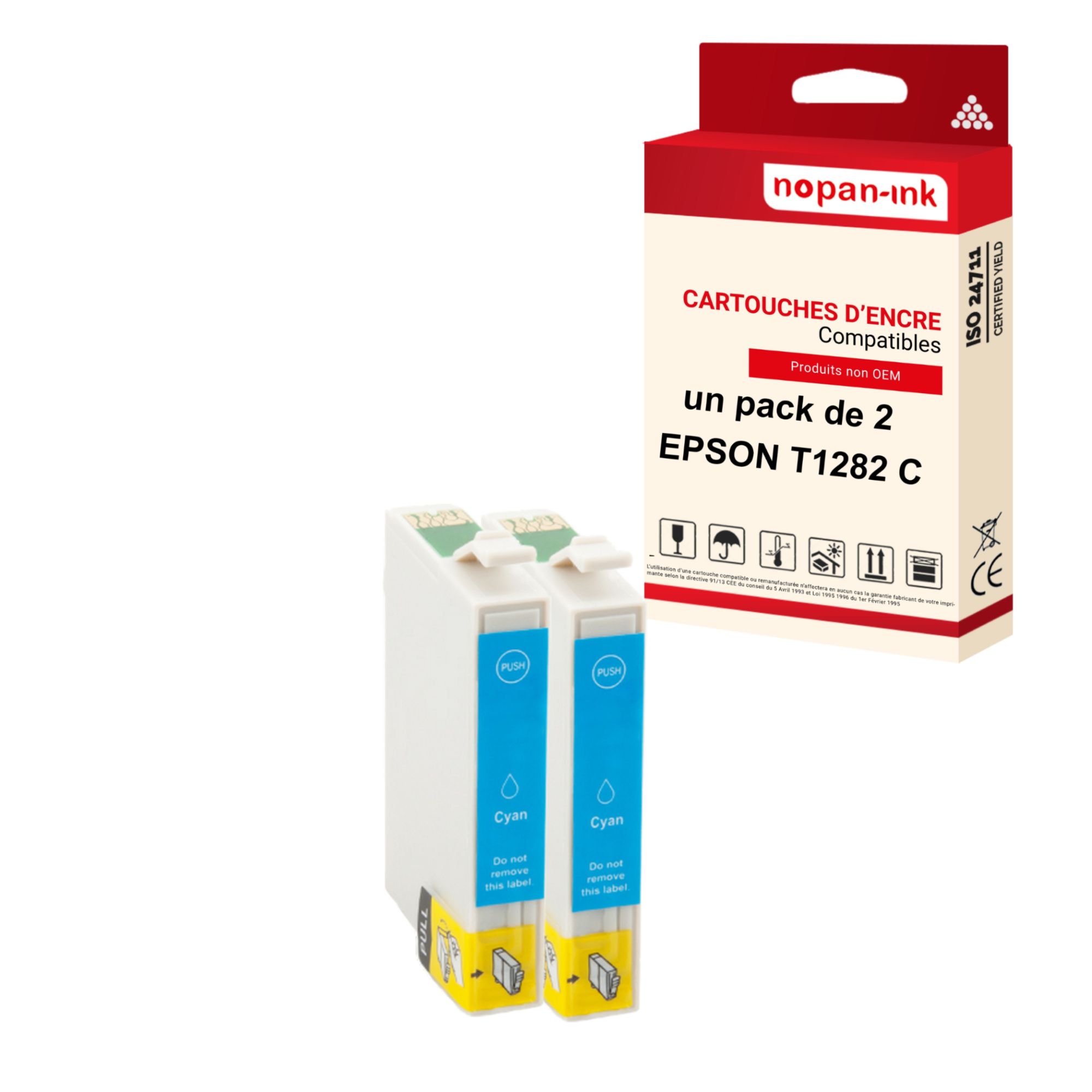 NOPAN-INK - x2 Cartouches compatibles pour EPSON T1282 XL T1282XL Cyan (Renard) pour Epson Stylus Office BX 305 F BX 305 FW Stylus SX 125 130 230 235