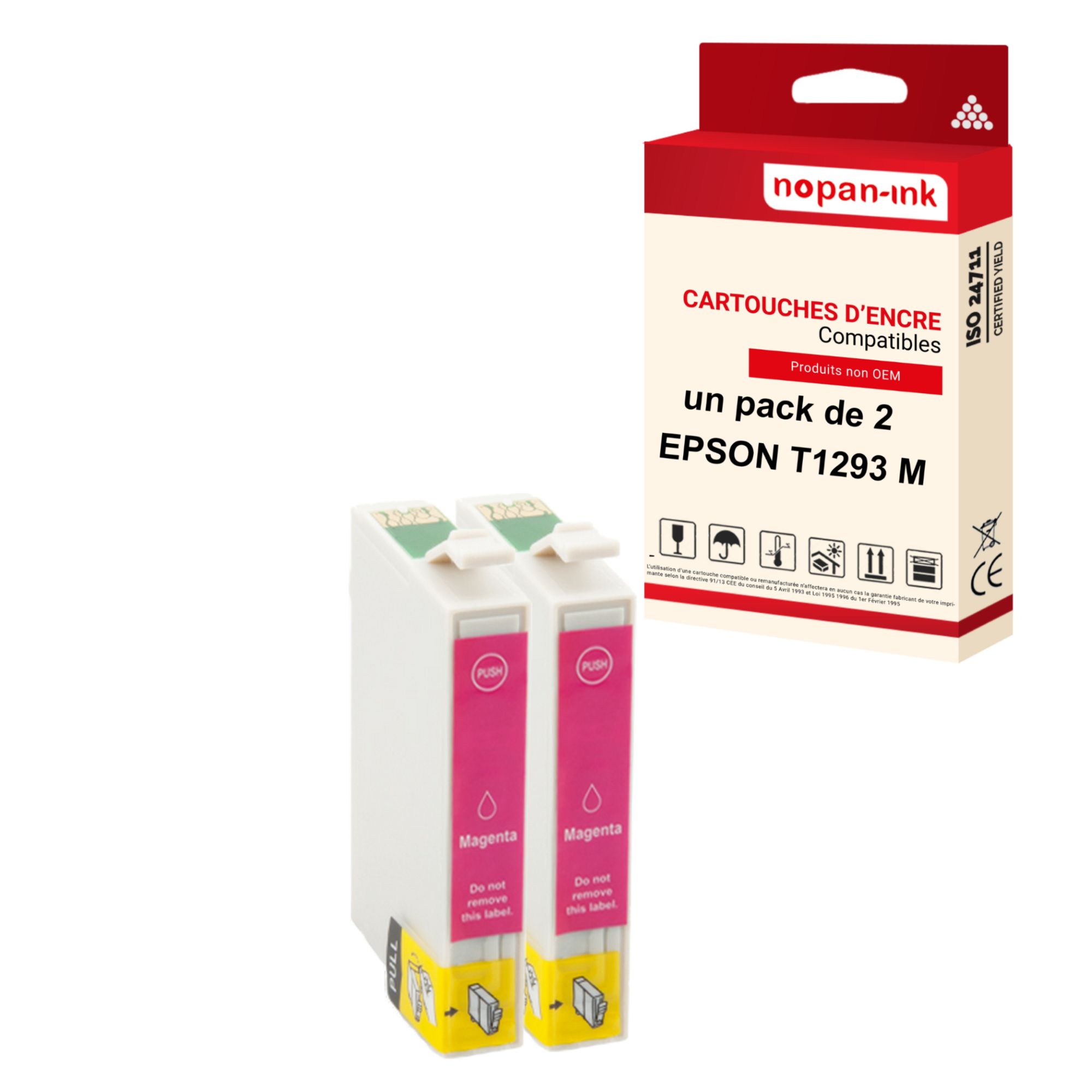 NOPAN-INK - x2 Cartouches compatibles pour EPSON T1293 XL T1293XL Magenta (Pomme) pour Epson Stylus Office BX 305 F BX 305 FW BX 525 WD Stylus SX 230