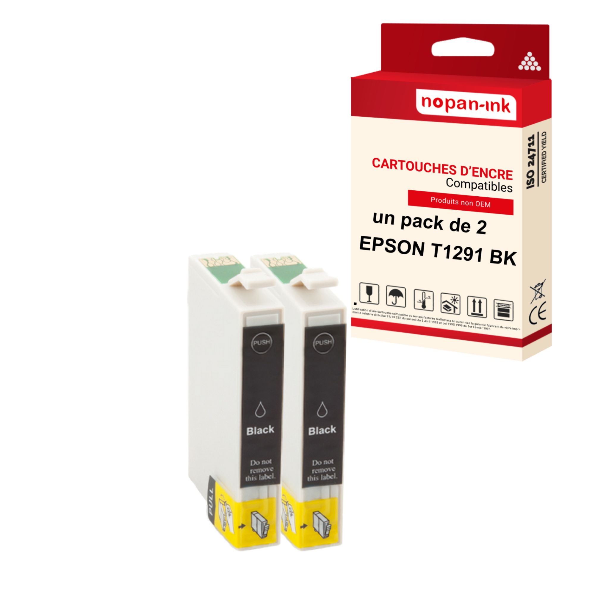 NOPAN-INK - x2 Cartouches compatibles pour EPSON T1291 XL T1291XL Noir (Pomme) pour Epson Stylus Office BX 305 F BX 305 FW BX 525 WD Stylus SX 230 235