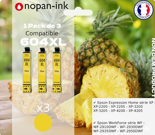 NOPAN-INK Compatible pour Epson 604XL, Pack de 3 Cartouches d'encre, Jaune, pour XP-2200/2205/3200/3205/4200/4205, WF-2910DWF/2930DWF/2950DWF, 500 Pages