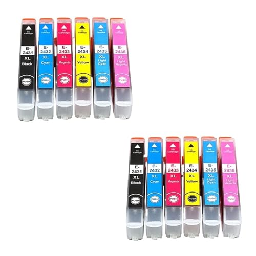 Cartouche d'encre T2431-T2436 T2431 24XL, Compatible for Epson Expression XP55 XP750 XP760 XP850 XP860 XP950 XP960 XP970 XP-55 XP-750 XP-760(1SET(12PC))