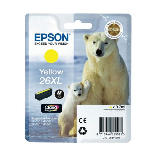 Epson 26 Multipack - Pack de 4 - noir, jaune, cyan, magenta - original - cartouche d'encre - pour Expression Photo XP-760, 860; Expression Premium XP-510, 520, 600, 620, 625, 720, 800, 820