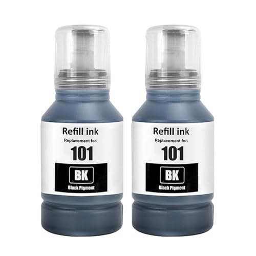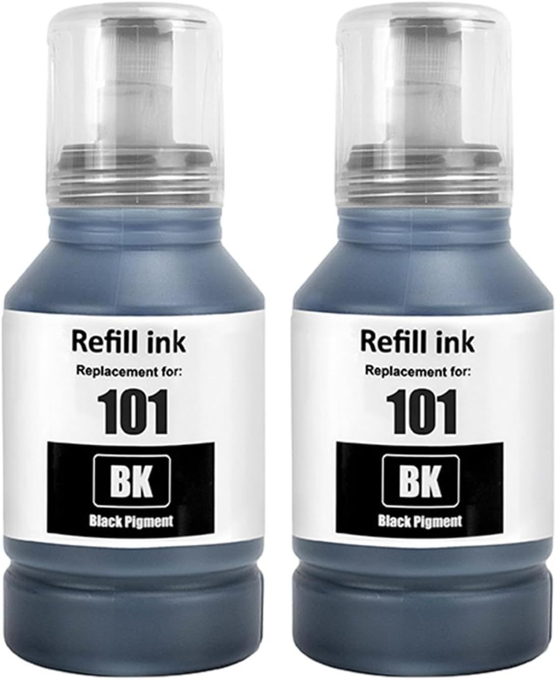 101 Encre Compatible Avec Epson 101 Bouteille D'Encre Multipack Pour Ecotank L4150 L4160 L4260 L4266 L6160 L6170 L6176 L6190 L6260(2-Pack,2 Pigment Noir)