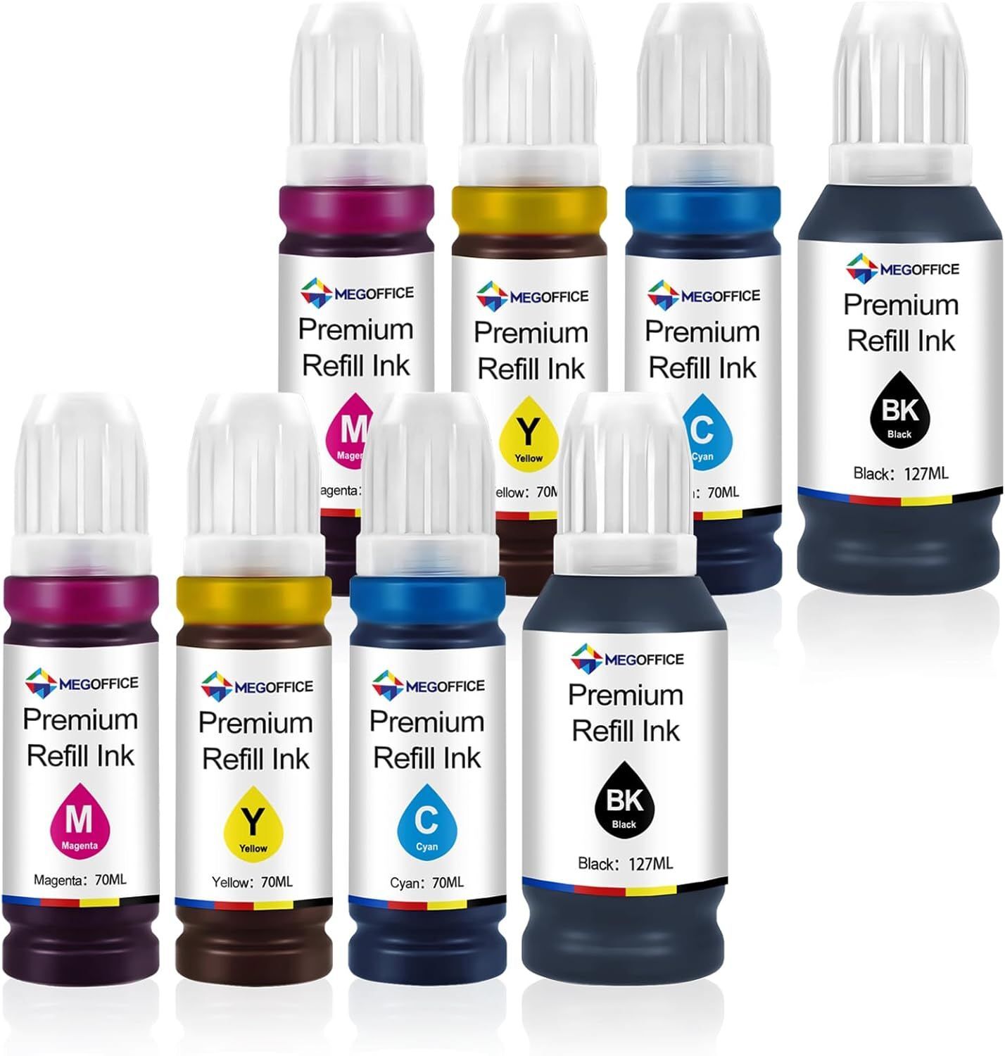 MEGOFFICE ET-104 Recharge d'encre Compatible pour Epson 104 103 102 101 Compatible pour Epson Ecotank ET-2710 2711 2712 2714 2715 2720 2721 2726 2810 2815 2820 2821 2825 2826 4700 4800(8 Pack)